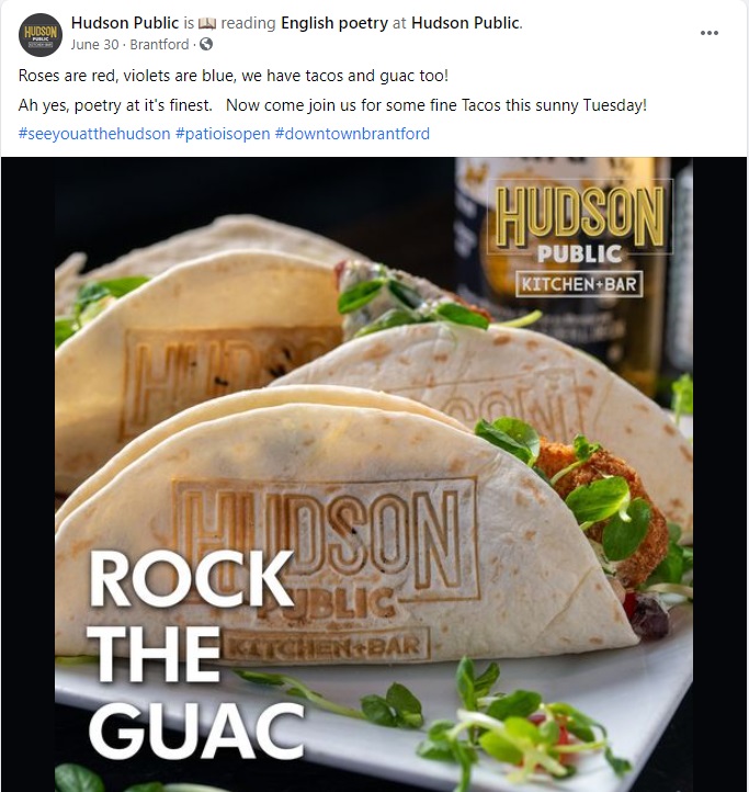 Hudson Public Kitchen and Bar social media posts June 17, 2021June 17, 2021 Cheryl Stornelli Share this: Print (Opens in new window) Print Email a link to a friend (Opens in new window) Email Share on LinkedIn (Opens in new window) LinkedIn Like Loading... Related Published by Cheryl Stornelli View all posts by Cheryl Stornelli